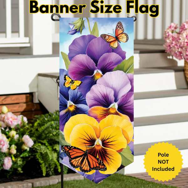 ‘Pansies & Butterflies’ Decorative Banner Flag
