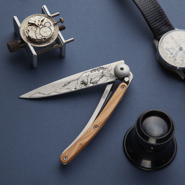The olive wood that adorns the handle of this Deejo knife is known for its robustness and antibacterial qualities. It is a great classic of cutlery. Widely acclaimed by enthusiasts for the beauty of its natural grain, each piece is unique depending on the tree from which it is fashioned, illuminating your Deejo with superb arabesques of beige, without fear of humidity or time.