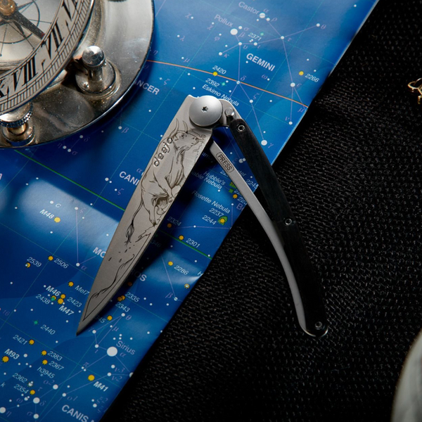 The ebony wood that adorns the handle of this Deejo knife is a true ode to deep blacks. This exceptional wood species has the particularity of being practically impervious to ambient humidity. It thus becomes the densest, most resilient and most precious wood, ideal for this magnificent piece of cutlery.