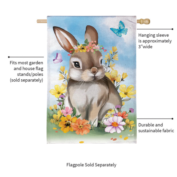 Give any garden or outdoor space an extra special touch with this stunning flag. With its cozy, seasonal design, this flag welcomes friends and family to the home in style. This flag is made of medium-weight, soft burlap fabric that's made from recycled plastic that has the look and feel of real burlap. Artwork is heat transferred onto both sides of the textured fabric to create a natural, crafted look. The flag is durable and weatherproof and will not fade or fray after continued display. This flag features a sleeve for use with any standard flagpole or stand, sold separately.