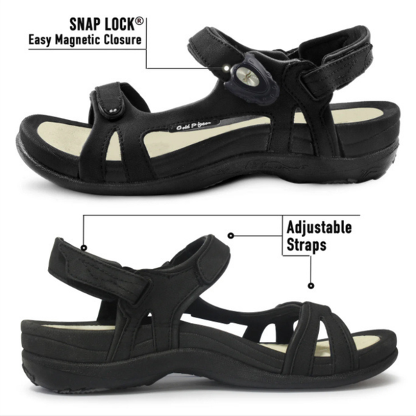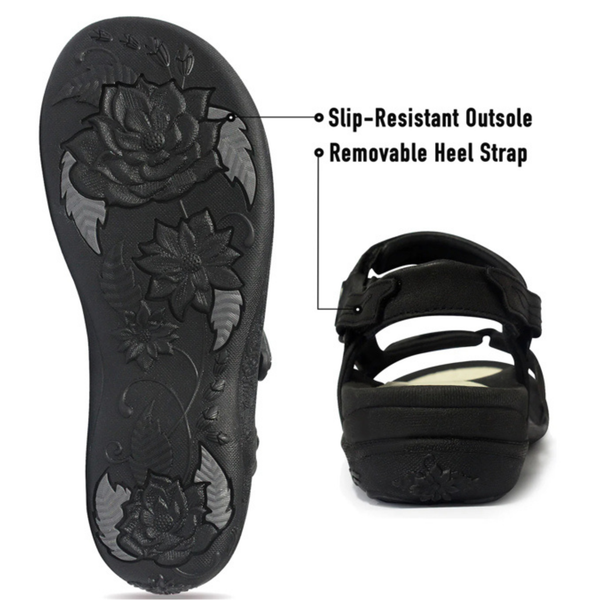 - Adjustable toe, arch & heel straps for best fit & comfort. Convertible heel strap to wear as slide sandals.
