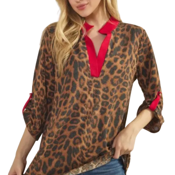 3/4 SLEEVE ANIMAL RIBBED TOP IN BROWN