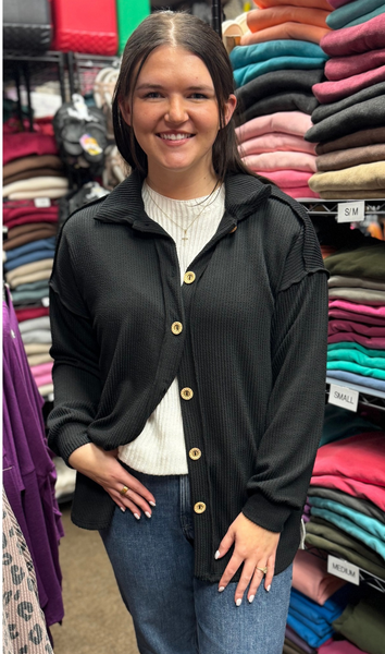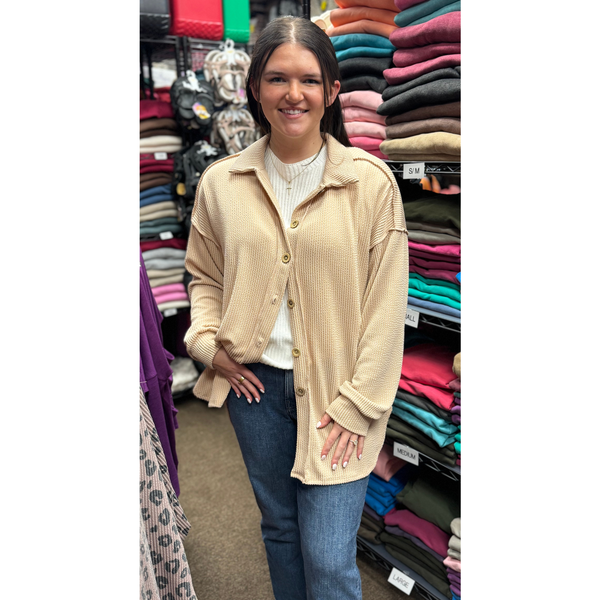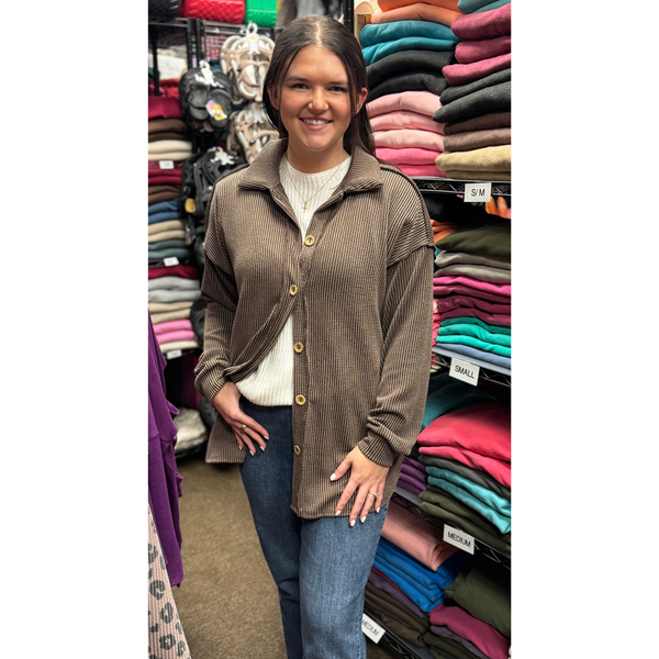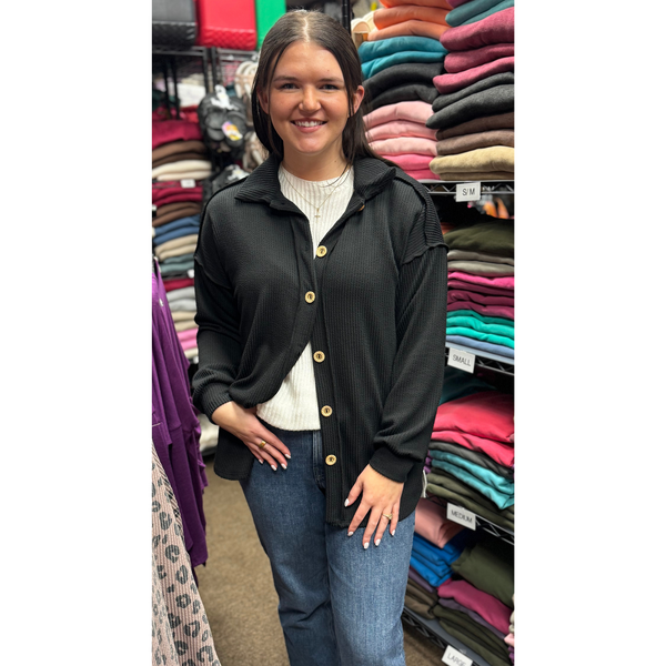 -SOLID URBAN RIBBED BUTTON DOWN SHACKET