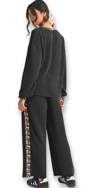 LDC Twisted Rib Leopard Patchwork Detail 2pcs Pant Set