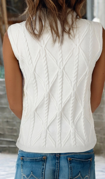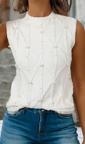 LDC Pearled High Neck Textured Knit Sweater Vest