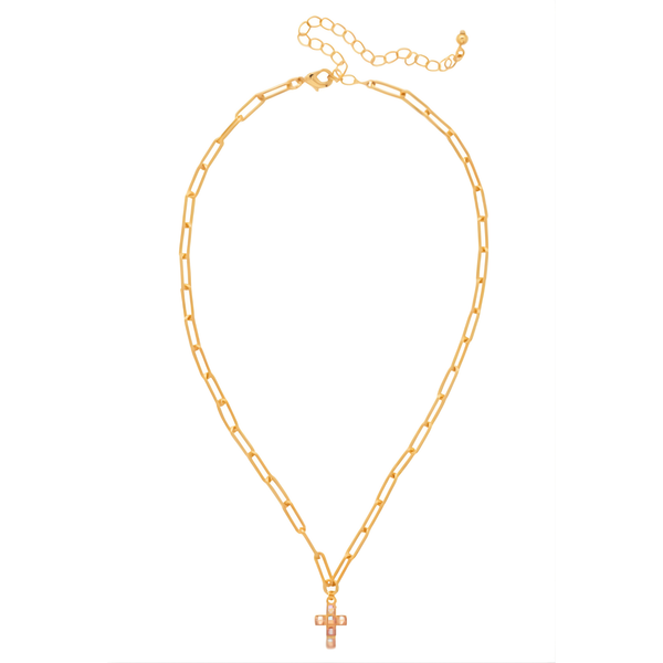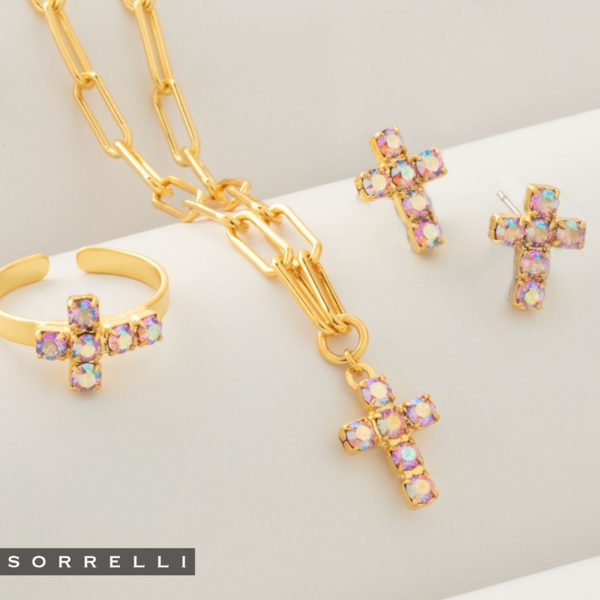 Sorrelli Carly Cross Pendant Necklace in Light Rose Aurora Borealis
