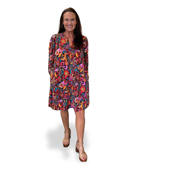 Wrinkle-free, travel friendly, Scarlett dress is back! We love our classic dress that is effortless and chic. This dress features a Lizzy neck with an A line silhouette.