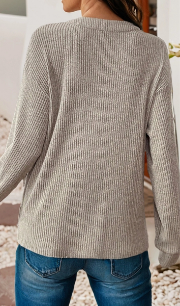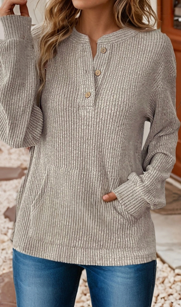 LDC RIBBED TEXTURE DROP SHOULDER HENLEY KNIT TOP