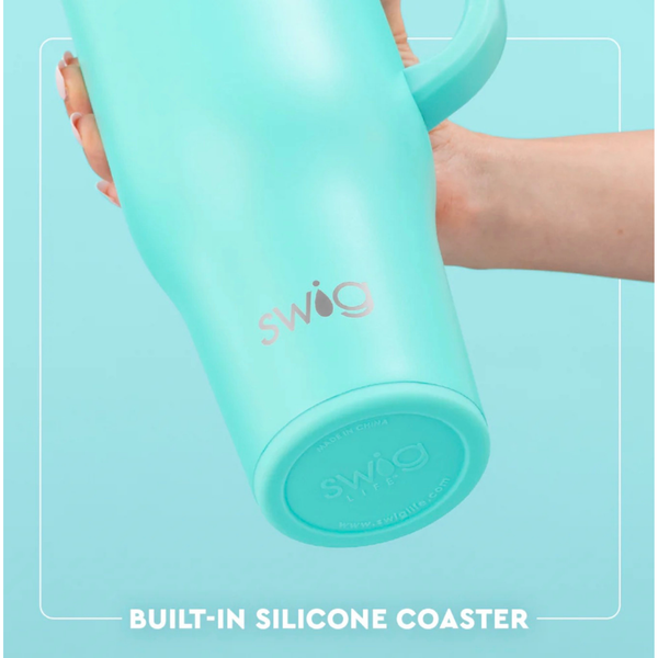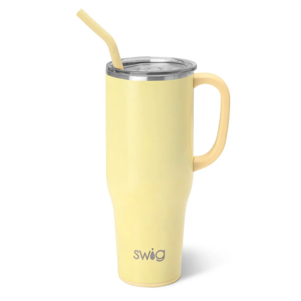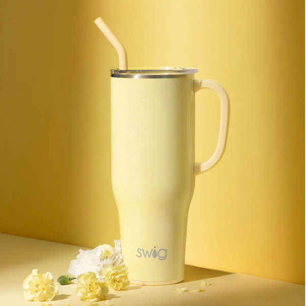 Hydrating has never been easier with our 40oz Insulated Mega Mug! A cup holder-friendly frame, a comfort-grip handle, and a plastic straw with a silicone flexi-tip all come together to create your new favorite Swig.