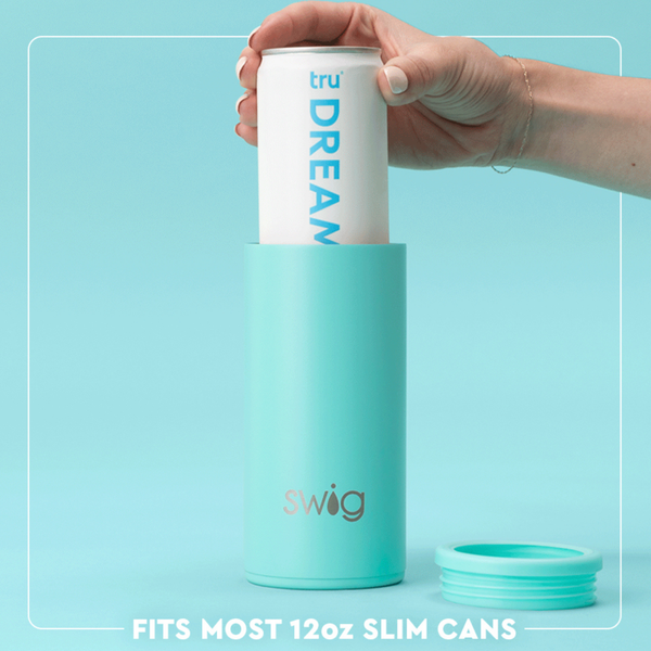 - Holds most 12oz slim can beverages including hard seltzers, beer, energy drinks, sodas, and sparkling water
