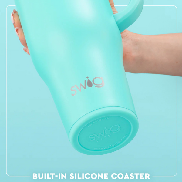 Hydrating has never been easier with our 40oz Insulated Mega Mug! A cup holder-friendly frame, a comfort-grip handle, and a plastic straw with a silicone flexi-tip all come together to create your new favorite Swig.
