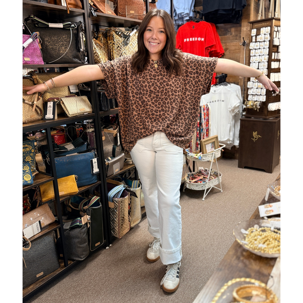 Oversized Ribbed Leopard Print Short Sleeve Top