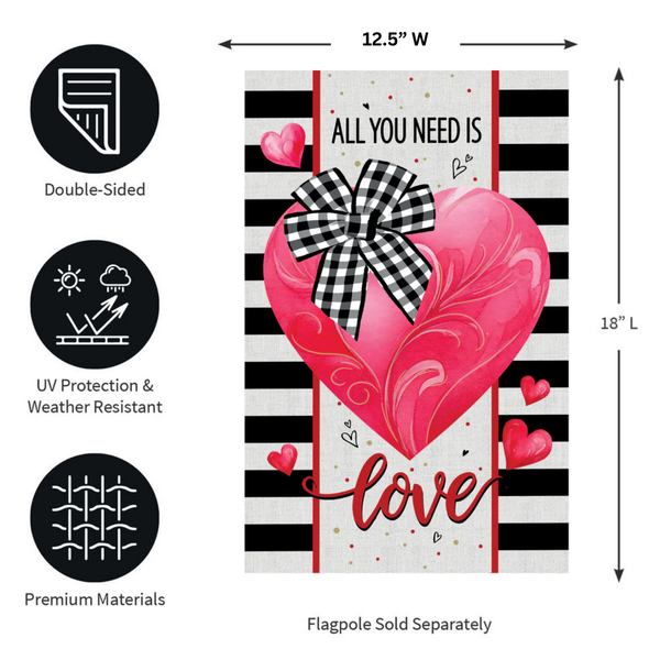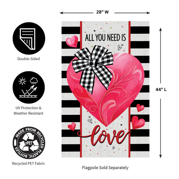 Dimensions STANDARD HOUSE: 28”W x 44”L x 0.5”HBursting with bright colors and a detailed, lively design that adds beauty to any space, this flag is perfect for spring and beyond. Hang it in the garden to greet guests, neighbors, and friends. Each Evergreen applique flag is carefully crafted from multiple layers of 310 denier nylon made from recycled plastic that can withstand a variety of weather conditions. We combine pieces of fade-resistant, strong fabric with tight, detailed stitching to create a dimensional mosaic effect. The soft yet heavyweight material illuminates beautifully in sunlight. Each flag features a sleeve that fits standard flagpoles or stands, sold separately. Due to the nature of the packaging, wrinkling may have occurred. Once item is unfolded and mounted on hardware, the creases will naturally fall out. Spot clean only. Never put in a dryer. When not in use, flags can be hung in a closet or placed in a storage container.