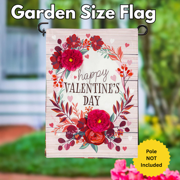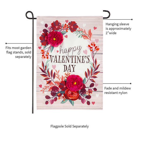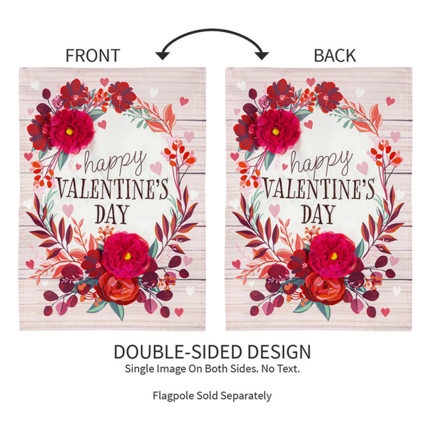 - Applique Garden Flag with stunning color reads "Happy Valentine's Day."