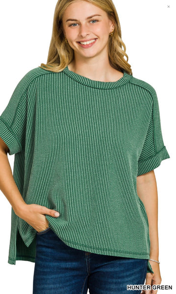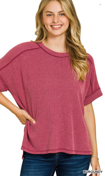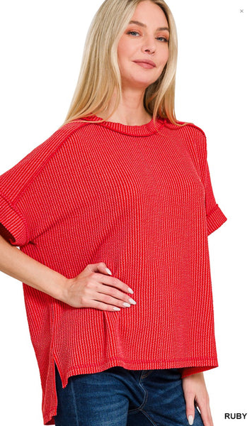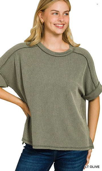 Zenana Corded Cuffed Sleeve Top, Assorted Colors