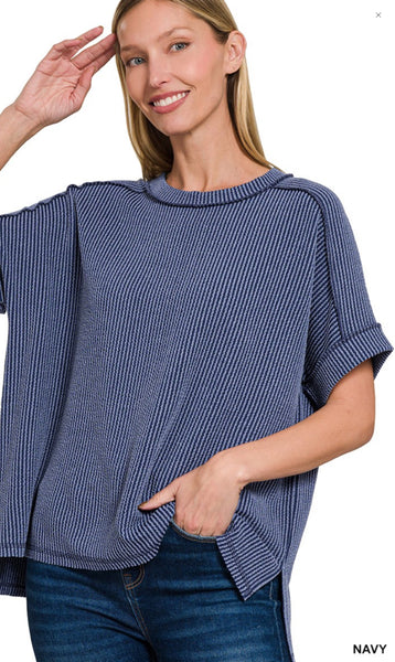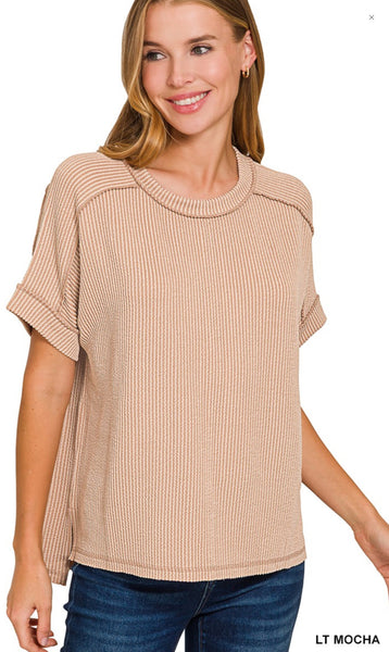 RAISED RIB CUFF SLEEVE RAW EDGE TOP